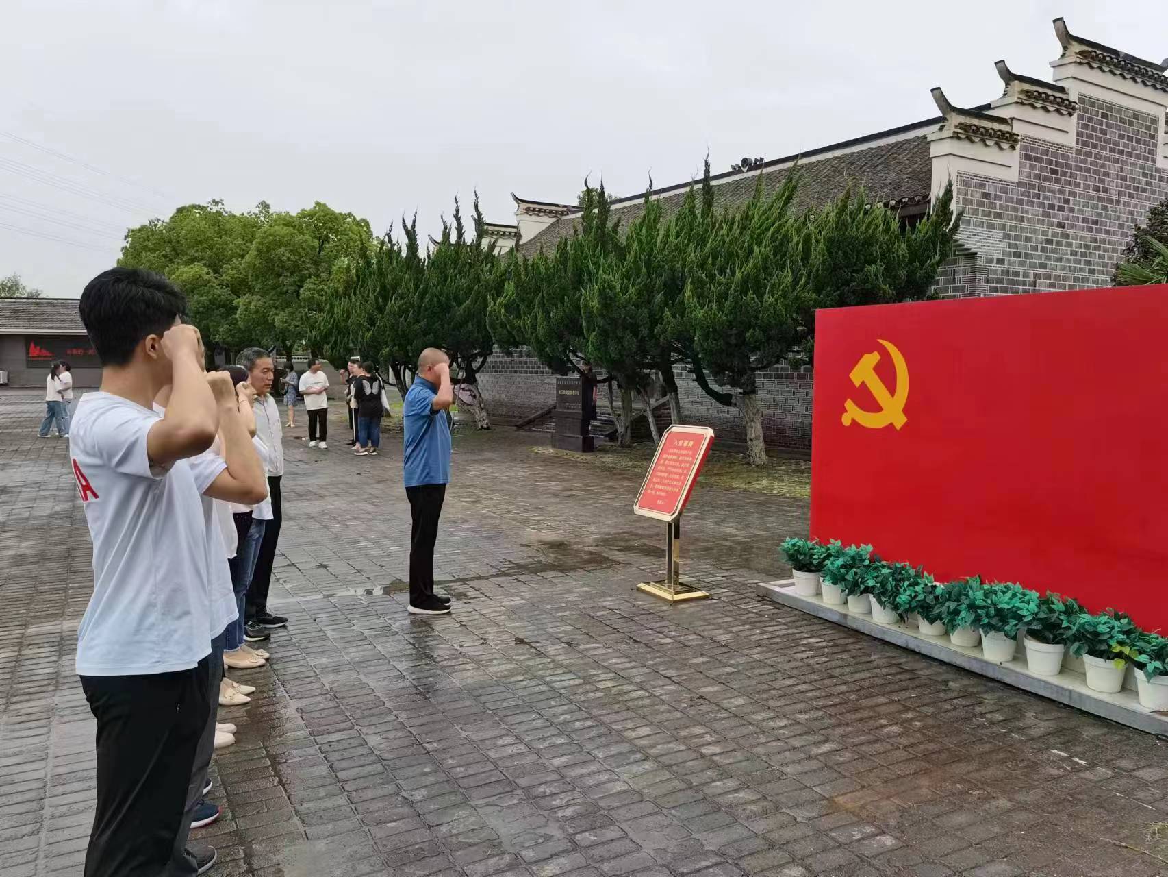 在渡江戰役總前委參謀處舊址廣場上,全體黨員重溫了入黨誓詞,面向鮮紅的中國共產黨黨旗,支部書記領誓,其他同志高舉右拳,鄭重宣誓,誓言聲鏗鏘有力,句句入心。