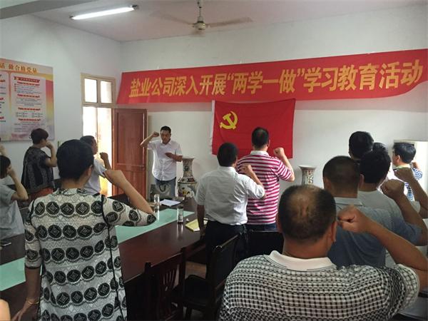 公司全體黨員在李方同志的帶領下,面向鮮紅的黨旗,高舉右手,嚴肅認真的重溫入黨誓詞,“重溫入黨誓詞”主體教育活動使黨員干部增進了對黨的感情,增強了黨員的歸屬感、光榮感、責任感和使命感,表達了為黨的事業奮斗終身的決心。新老黨員紛紛表示,在本職工作中要發揮模范作用,客觀面對鹽業體制改革新形勢,積極努力開創鹽業體制改革新局面。