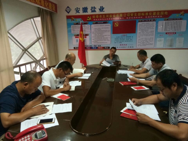 近日,五河鹽業公司黨支部召開“講嚴立”專題警示教育學習會,全體在崗黨員參加,黨支部書記薛寶成主持會議。