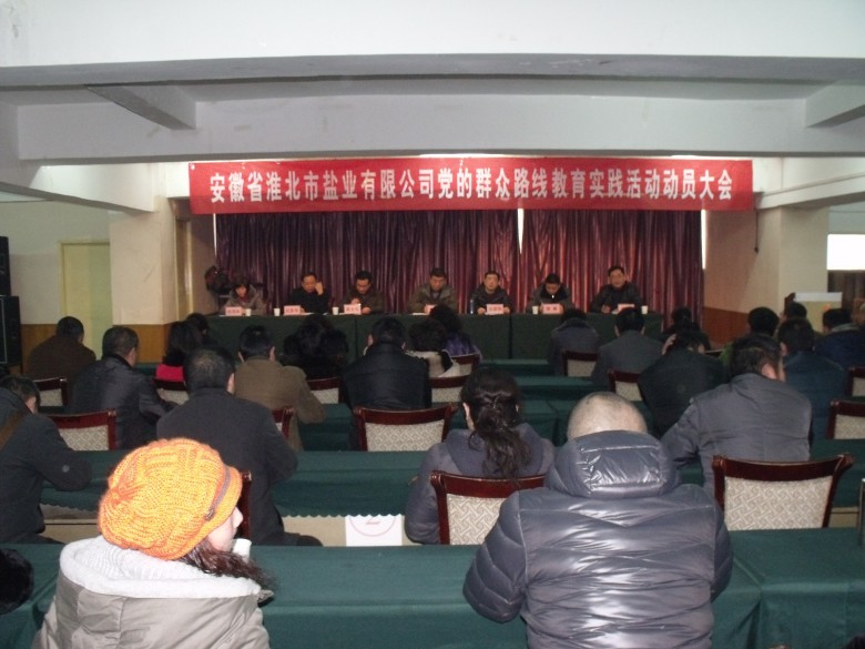 會上副經理、紀委書記邊潔如宣讀了《關于成立安徽省淮北市鹽業有限公司黨的群眾路線教育實踐活動領導小組的通知》,公司黨委書記、經理汝國華作了動員講話,并對活動開展進行具體安排部署。
