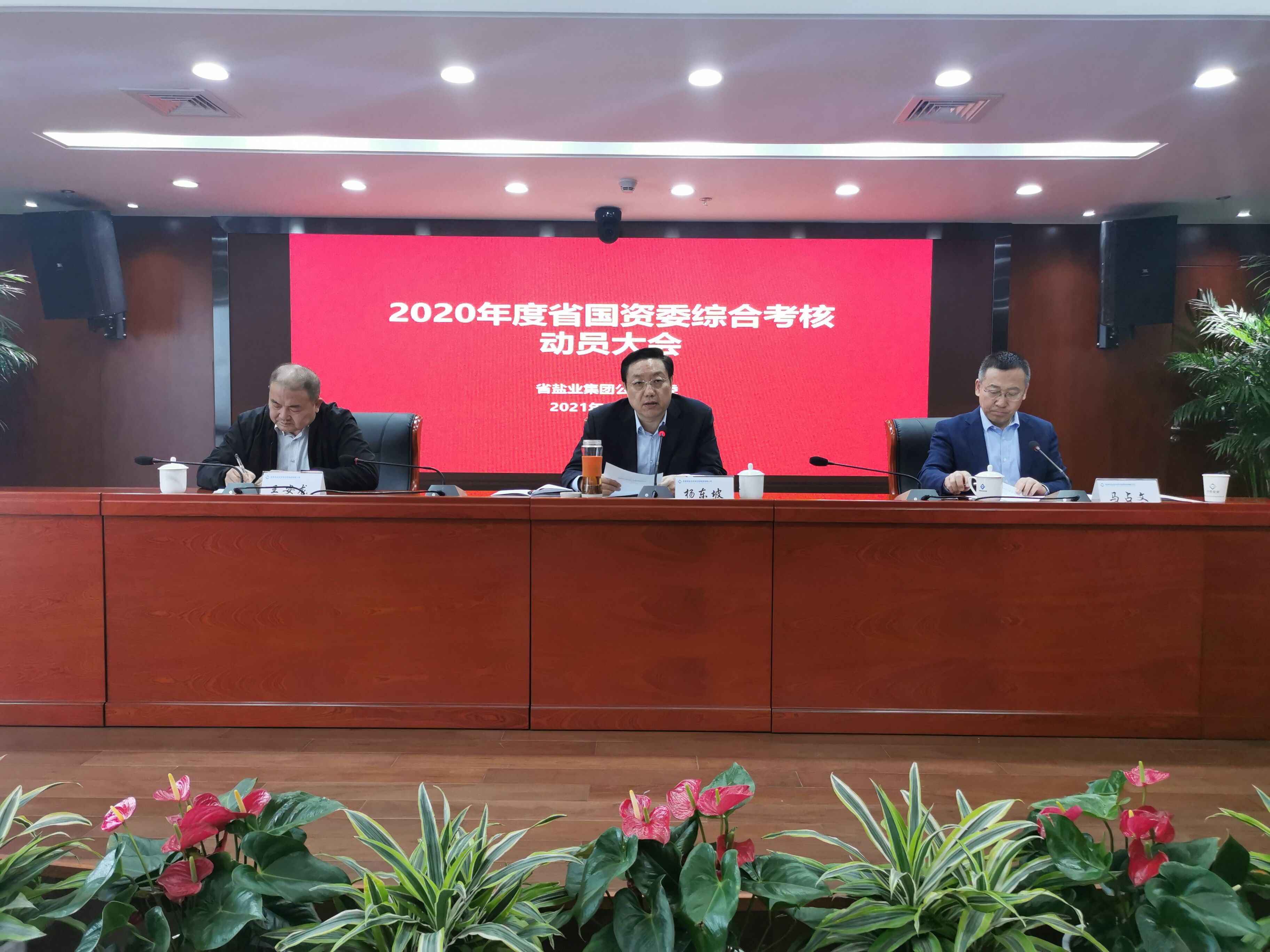 馬占文代表集團領導班子作2020年度總結報告。報告分別從黨建、發展、選人用人等方面系統總結回顧了集團一年來的主要工作。他指出,2020年集團領導班子認真貫徹落實省委、省政府和省國資委決策部署,統籌抓好疫情防控和經營發展、黨的建設等各項工作,各項工作取得顯著成效。“轉”、“調”、“退”三篇文章進展順利,集團轉型發展穩步推進,以實際行動落實“六穩”“六保”要求,全力推進安徽鹽業“二次創業”邁上新臺階。