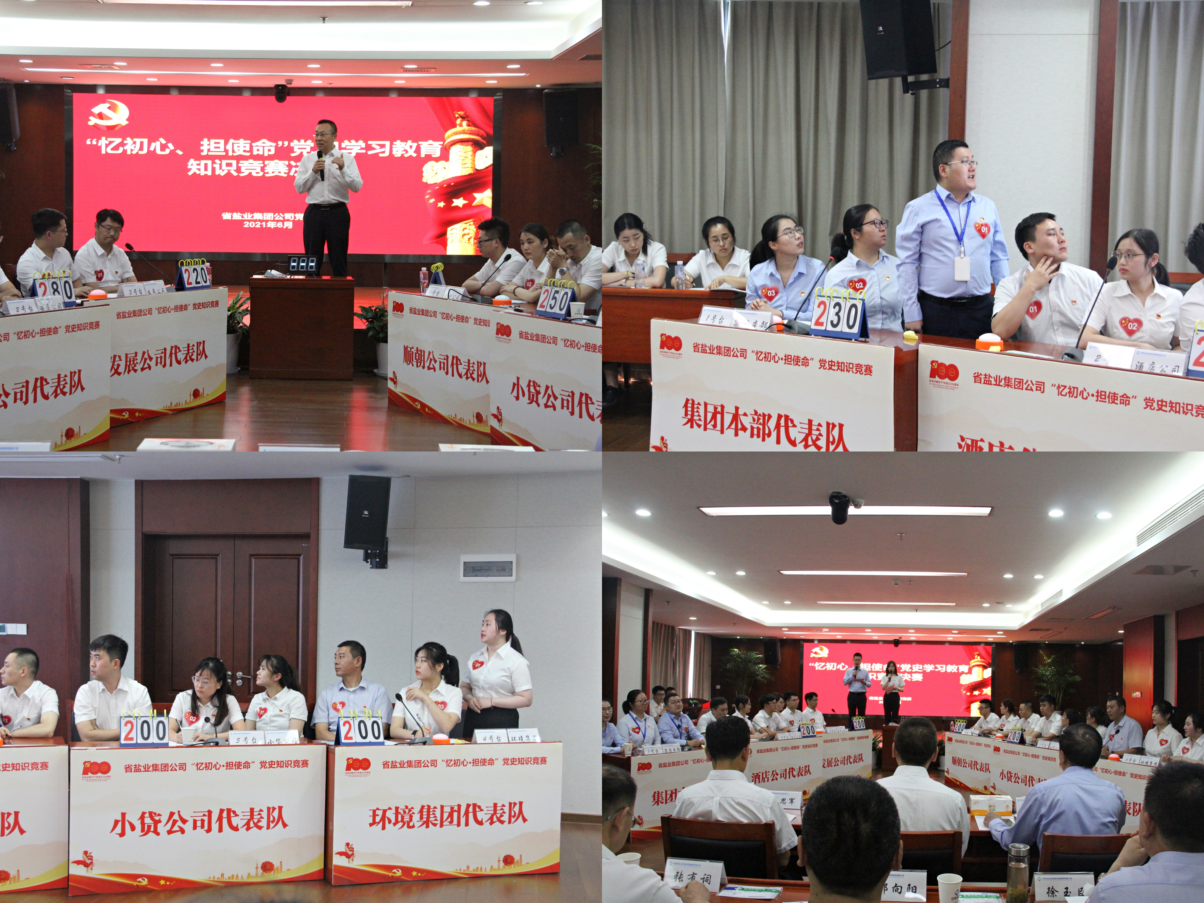 本次黨史知識競賽自5月中旬以來,在廣大基層黨員干部中得到了積極參與。今年3月,集團公司黨委上線“鹽業學習強企”小程序,開展黨員線上黨史學習教育和知識測試,累計參與1000余人次,為黨史知識競賽預熱。預賽,來自各直屬單位和集團本部10支代表隊經過激烈角逐,其中6支隊伍闖入決賽。在決賽中,通過必答題、搶答題、風險題的緊張較量,最終順朝公司代表隊獲得一等獎,集團公司本部代表隊和酒店管理公司代表分獲二、三等獎。