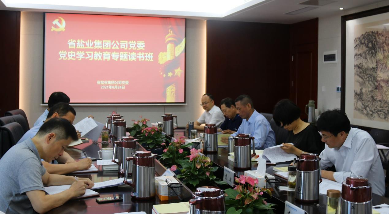 6月24日至25日,省鹽業(yè)集團(tuán)公司黨委舉辦黨史學(xué)習(xí)教育專題讀書班,采取“專題學(xué)習(xí)+集體研討”的方式,分4個(gè)專題學(xué)習(xí)黨在新民主主義革命,社會(huì)主義革命和建設(shè),改革開放和黨的十八大以來的輝煌奮斗歷程,并圍繞集團(tuán)轉(zhuǎn)型發(fā)展開展集中研討。集團(tuán)公司黨委書記、董事長(zhǎng)馬占文,黨委副書記、總經(jīng)理、董事王思軍等黨委理論學(xué)習(xí)中心組成員參與專題學(xué)習(xí),集團(tuán)本部中層正職以上干部列席。
