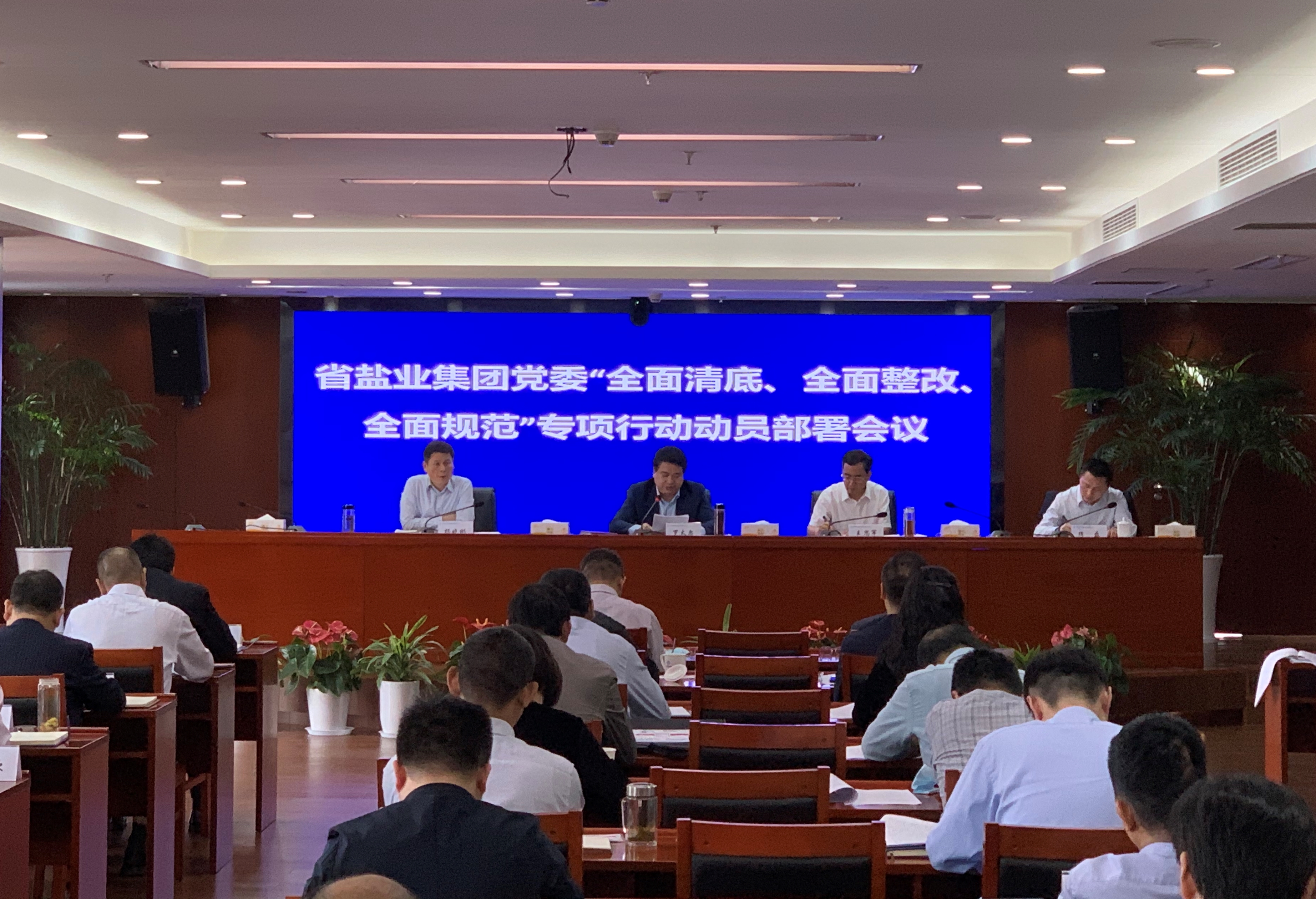會議傳達學習了李中書記包保督導鹽業集團時的講話,傳達學習了省國資委黨委“全面清底、全面整改、全面規范”專項行動會議精神,安排部署了集團公司“三個全面”專項行動及綜合監督檢查工作,明確了此次專項行動的總體要求、主要任務、時間安排及工作要求。