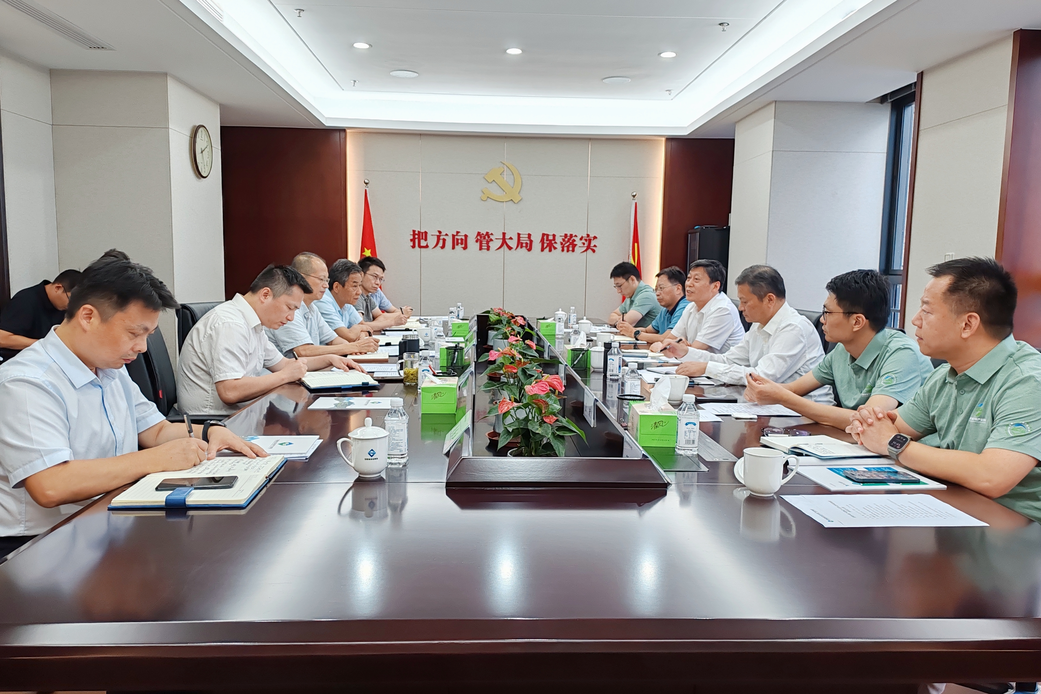 省生態環境廳原二級巡視員許建,集團黨委委員、副總經理李明(主持總經理辦公會),集團黨委委員、副總經理繆磊,省經濟研究院副院長蔣旭東,以及雙方有關部門負責同志參加會議。