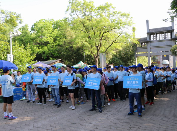 當日七時許,300多名“藍色大軍”來到大蜀山北門列陣以待,在山巒翠柏的映襯下,成為一道亮麗風景線。