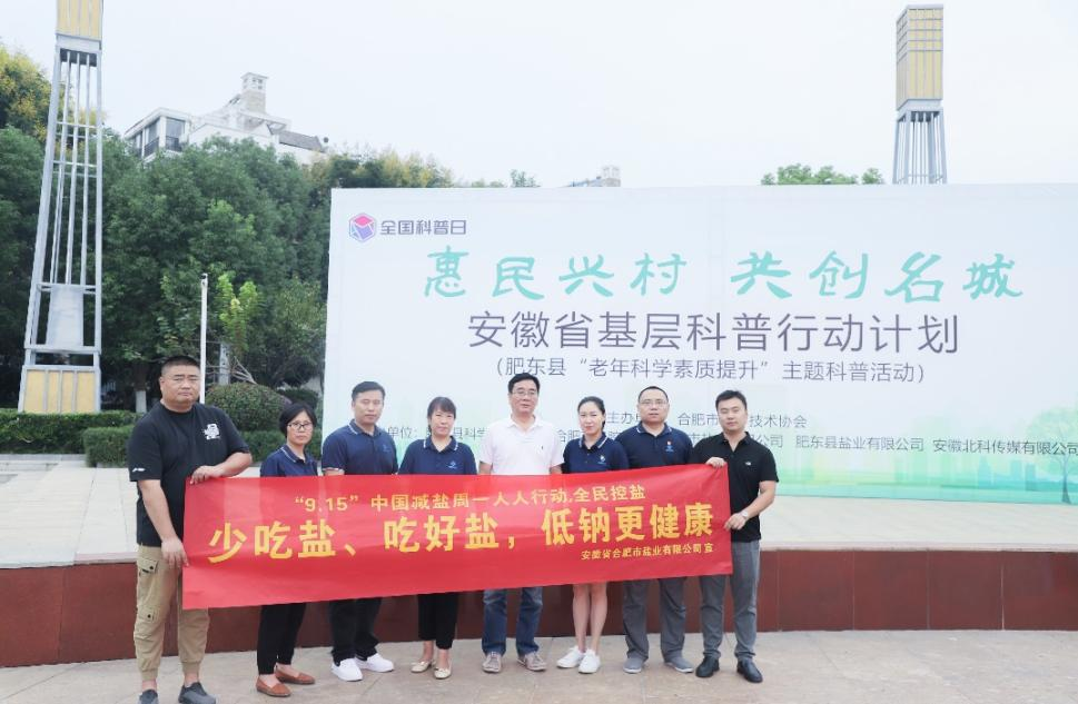 在活動現場,來自合肥市公司、肥東縣公司的科普志愿者向群眾科普食鹽知識,宣傳科學補碘、健康減鹽科學理念,推廣中鹽牌綠色低鈉鹽。