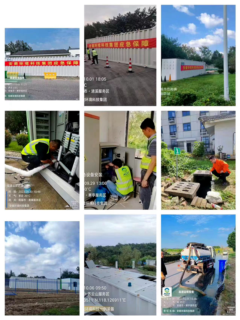 2023年中秋、國慶假期,是安徽省生態(tài)環(huán)境產(chǎn)業(yè)集團(tuán)掛牌后的第一個長假。為確保全省高速服務(wù)區(qū)污水處理項目假日期間穩(wěn)定達(dá)標(biāo)運(yùn)營,保障人民群眾舒心出行,環(huán)境公司針對全省高速服務(wù)區(qū)高人流量、高運(yùn)維壓力的特點(diǎn),制定兩節(jié)期間運(yùn)維巡檢方案和巡檢值班表,抽調(diào)本部與各子項目公司30余人協(xié)同作戰(zhàn),在人流量大和生態(tài)敏感區(qū)的重點(diǎn)服務(wù)區(qū)安排專人駐場負(fù)責(zé)污水站點(diǎn)運(yùn)維,在各站點(diǎn)提前儲存藥劑和維修物品,同時緊急調(diào)配三臺一體化設(shè)備安裝在寒亭、香鋪、清溪三個大流量服務(wù)區(qū)以策萬全。