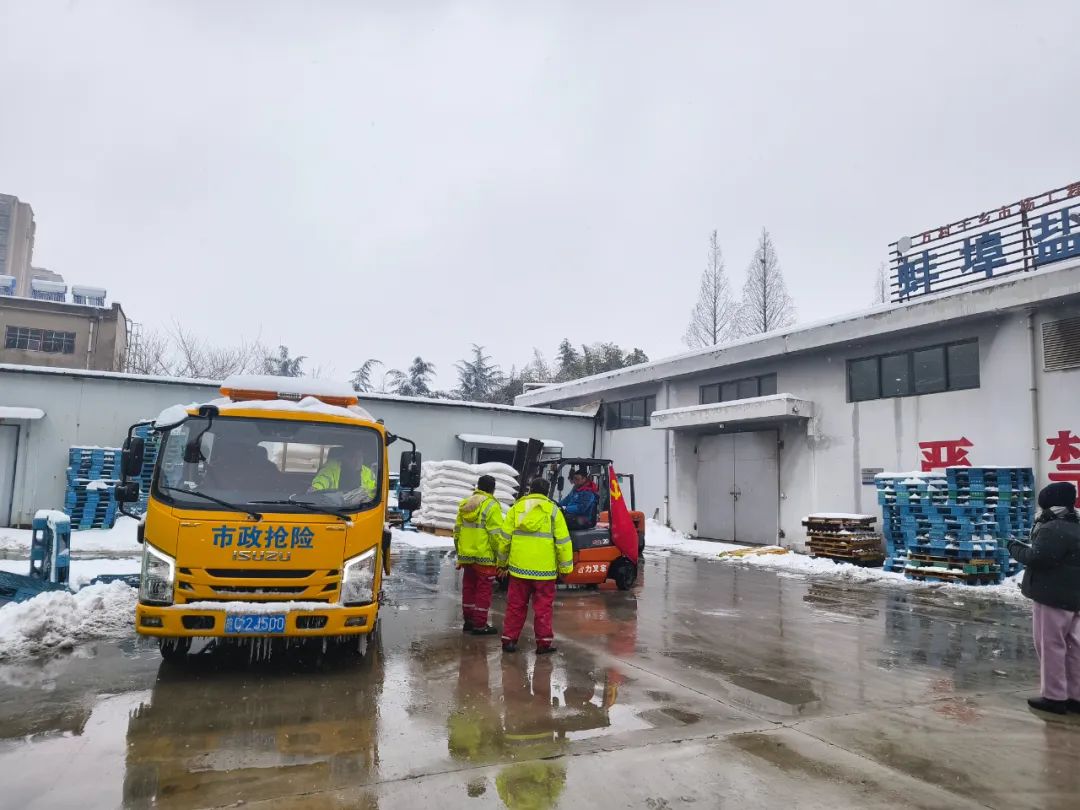 六安鹽業公司直屬黨支部黨員對接道路應急單位,統籌安排融雪鹽保供。