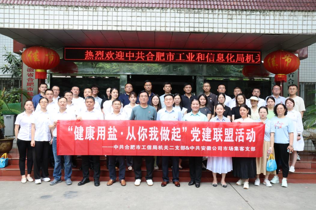 8月30日上午,合肥市工業和信息化局機關二支部、安徽省通信產業服務有限公司市場集客支部赴合肥市鹽業公司,開展“健康用鹽 從你我做起”共建主題黨日活動。市工信局駐局紀檢監察組組長、黨組成員李玲,市工信局產業政策處處長周玉玲,安徽省通信產業服務有限公司市場集客支部書記陳猛,合肥市公司黨委書記、董事長張鷹,黨委委員、副經理張革,以及共建單位黨員同志參加活動。